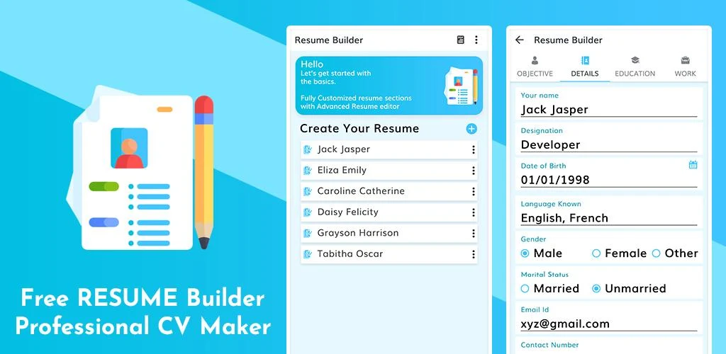 In this resume maker app, it's easy to create and share the best resumes with the. Resume builder cv maker app free cv templates 2019 is a free app for android, that belongs to the category 'business & productivity'. Free resume creator app ( career builder ) app features: Resume builder cv maker app free cv templates 2019. Intelligent cv is an app designed to help you create a completely personalized cv with all kinds of information.
